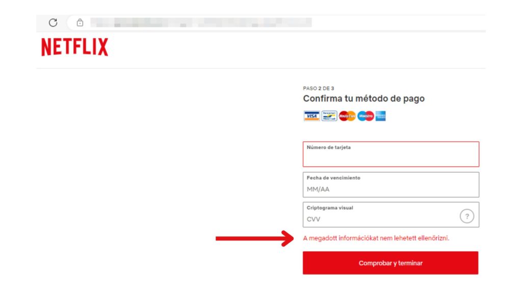 Al momento de proporcionar los datos te redirige a un supuesto error en idioma húngaro.